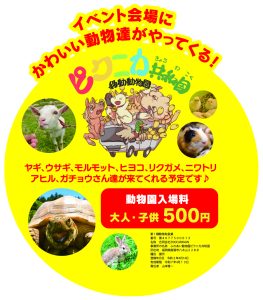 ■入場料:無料(移動動物園ピクニカ動物園への入場には大人、子供ともに500円(税込)が必要です)
